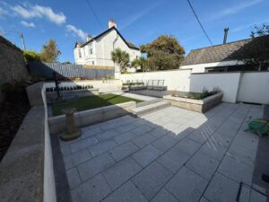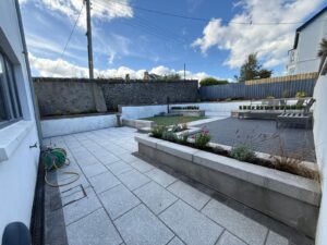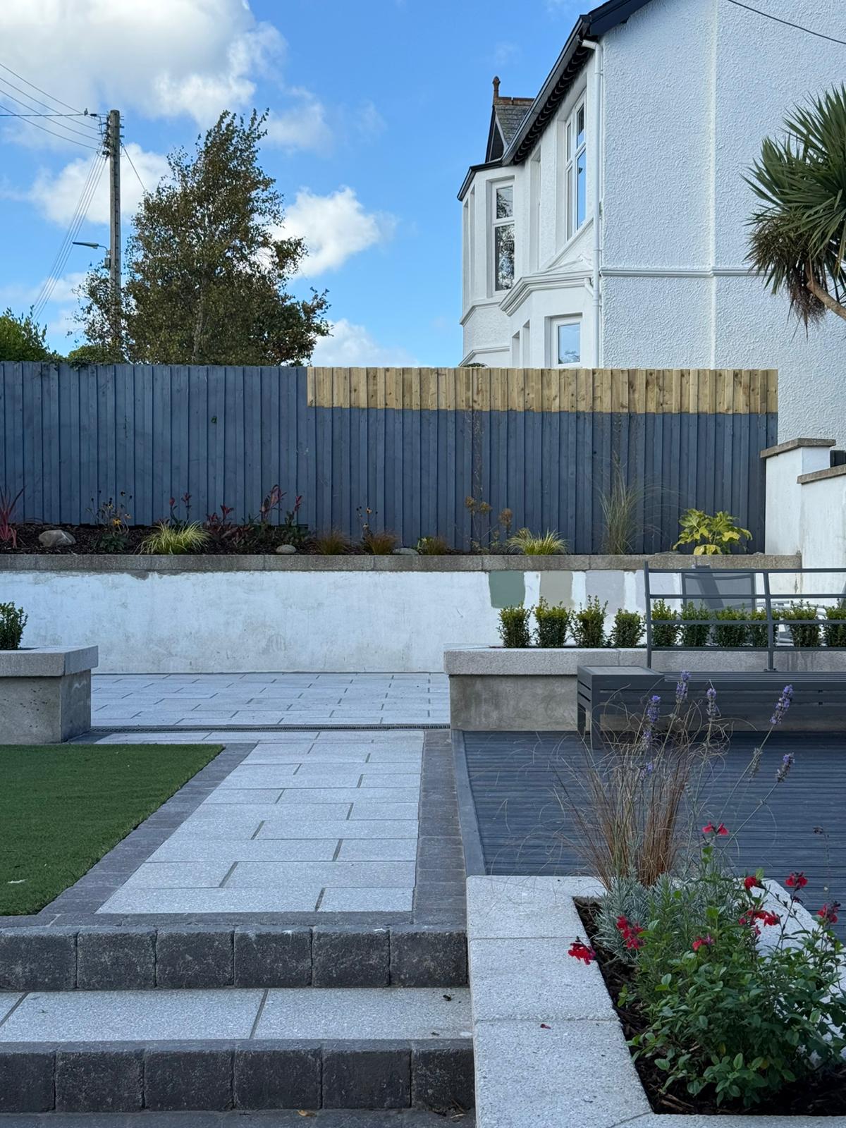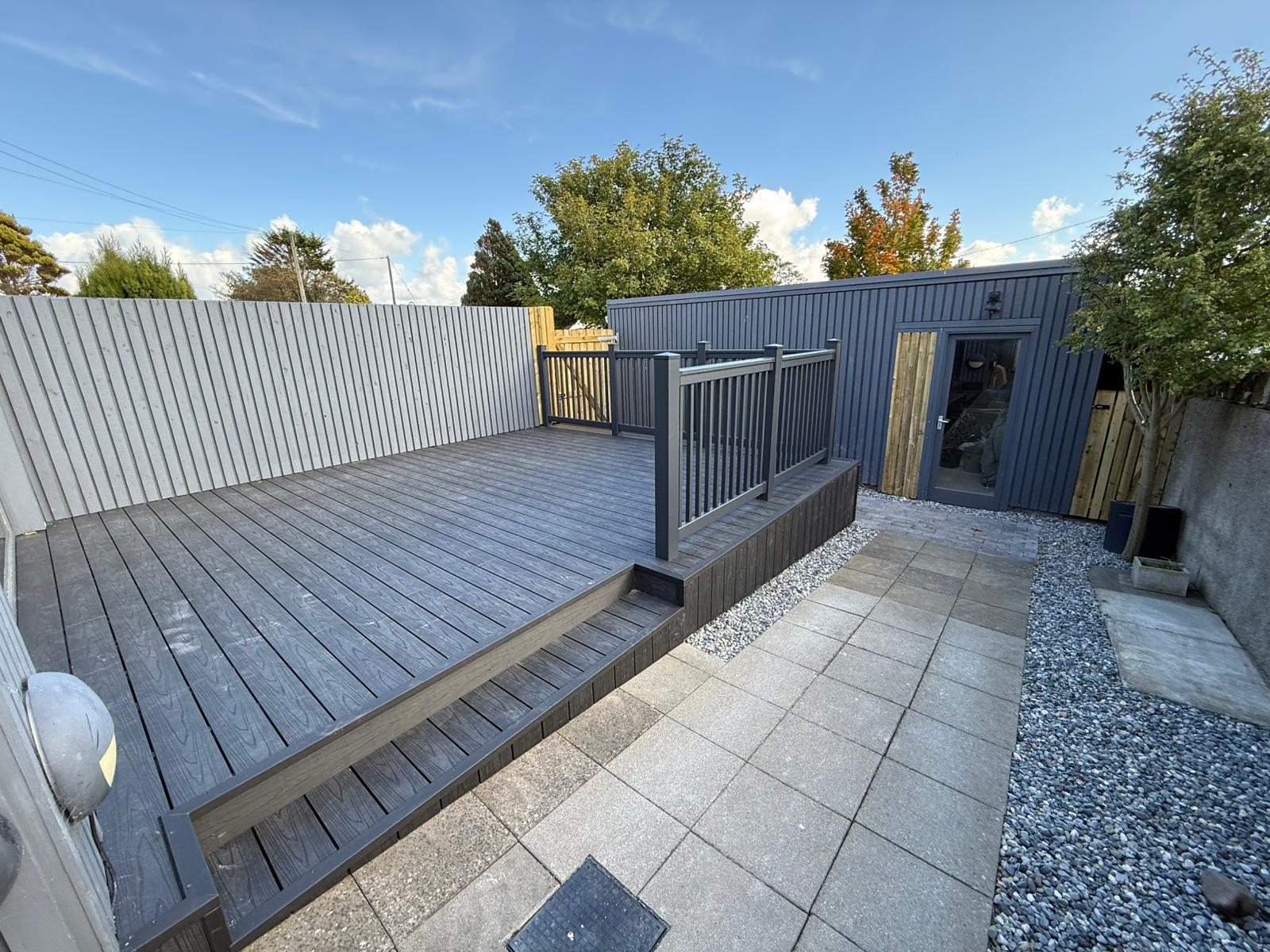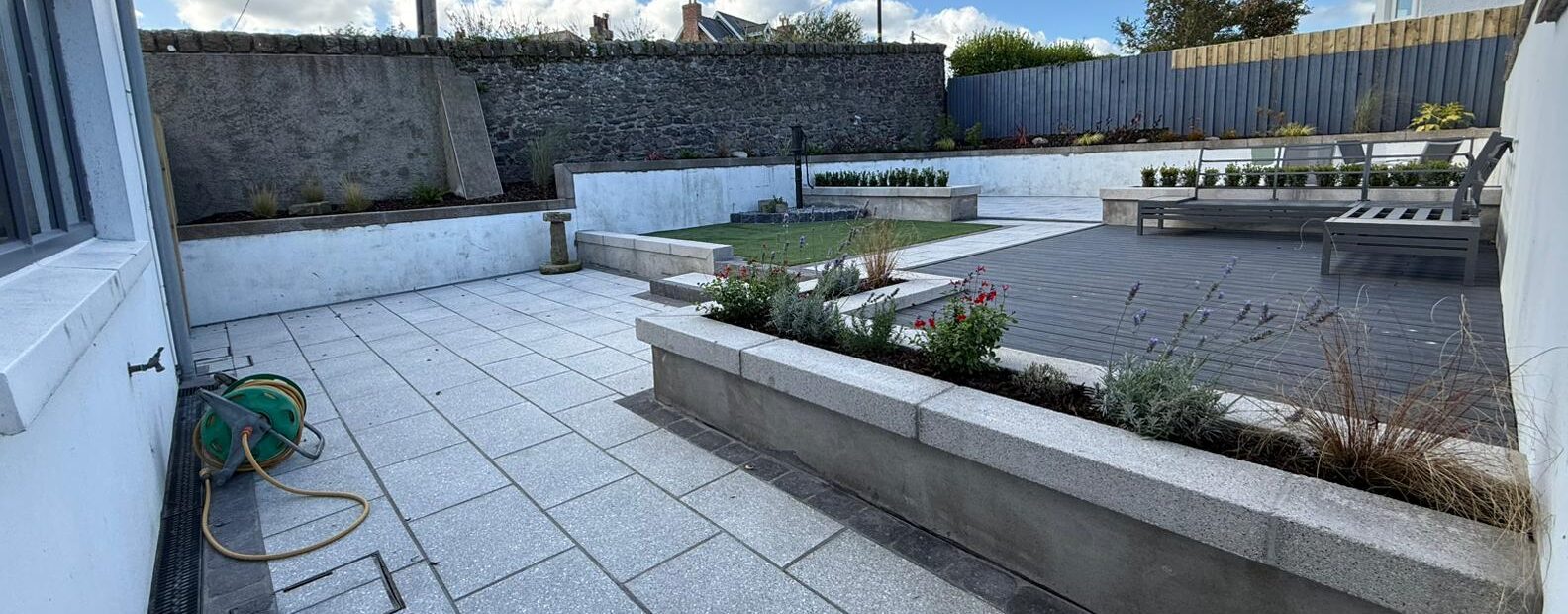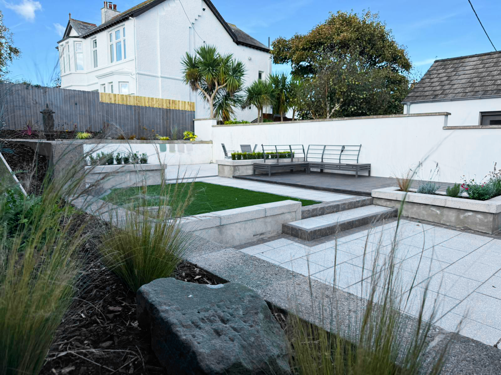 A private homeowner in Donaghadee, Northern Ireland approached Kinrush to completely redesign an outdated, overgrown garden. The space had become unsafe, with rotting decking, no handrails, and limited access. The client wanted a modern outdoor retreat that flowed seamlessly with the house’s contemporary architecture while staying durable, low-maintenance, and adaptable for the future.